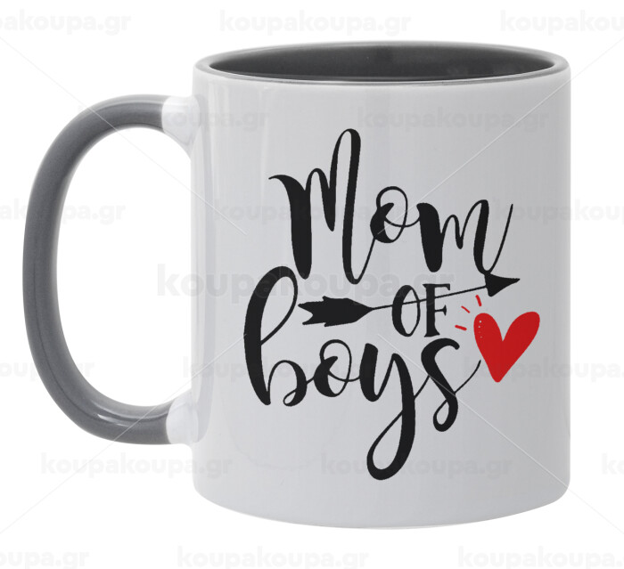 Mom of boys, Κούπα χρωματιστή γκρι, κεραμική, 330ml