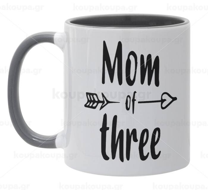 Mom of three, Κούπα χρωματιστή γκρι, κεραμική, 330ml