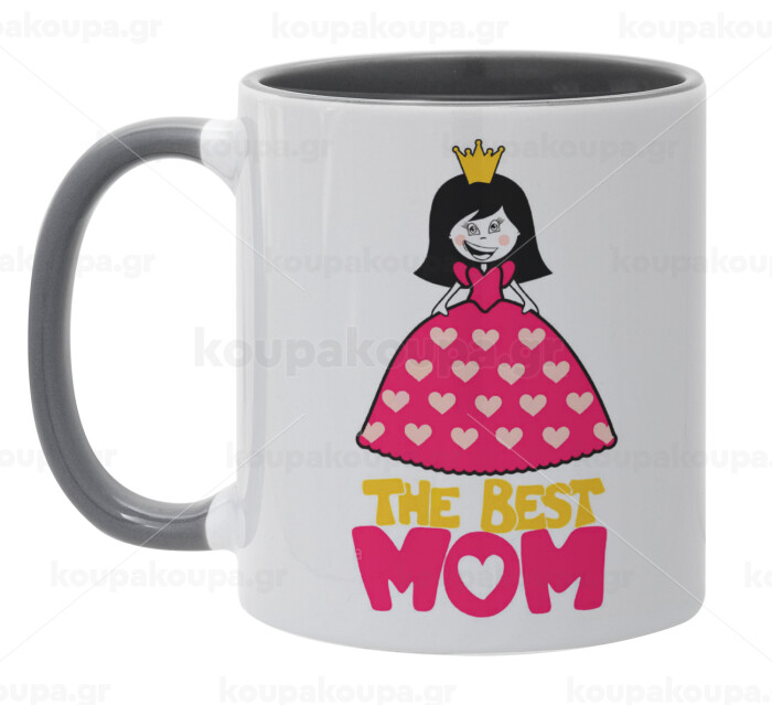 The Best Mom Queen, Κούπα χρωματιστή γκρι, κεραμική, 330ml