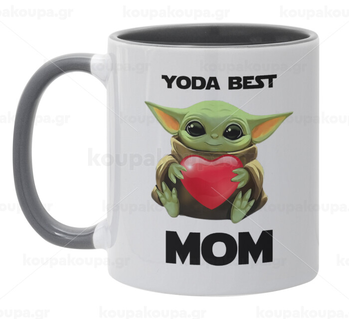 Yoda Best mom, Κούπα χρωματιστή γκρι, κεραμική, 330ml
