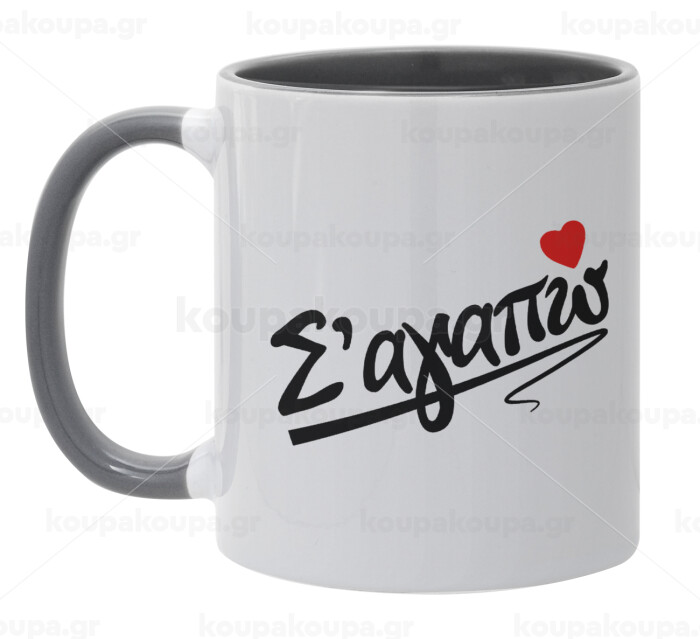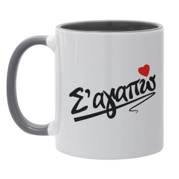 Σ΄ αγαπώ!!!, Κούπα χρωματιστή γκρι, κεραμική, 330ml