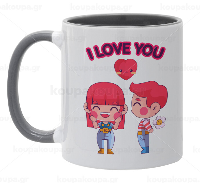 Couple, I love you, Κούπα χρωματιστή γκρι, κεραμική, 330ml