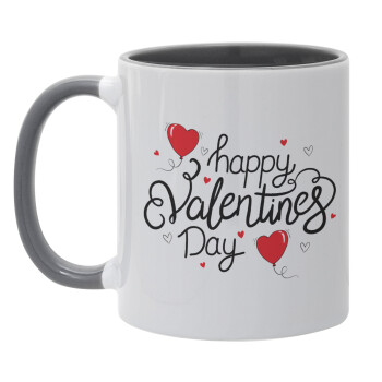 Happy Valentines Day!!!, Κούπα χρωματιστή γκρι, κεραμική, 330ml