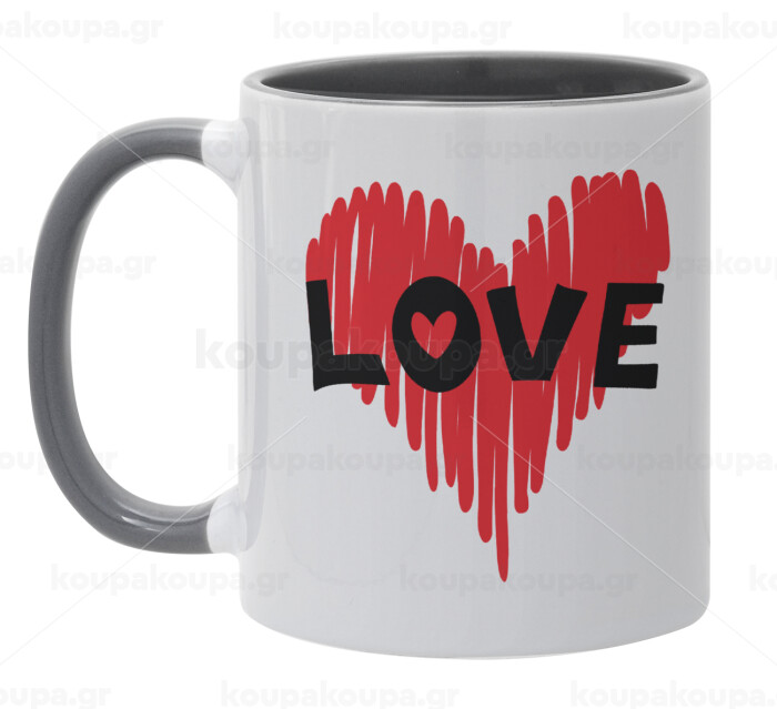 I Love You red heart, Κούπα χρωματιστή γκρι, κεραμική, 330ml