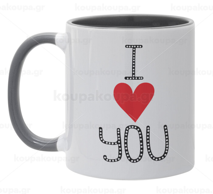 I Love You small dots, Κούπα χρωματιστή γκρι, κεραμική, 330ml