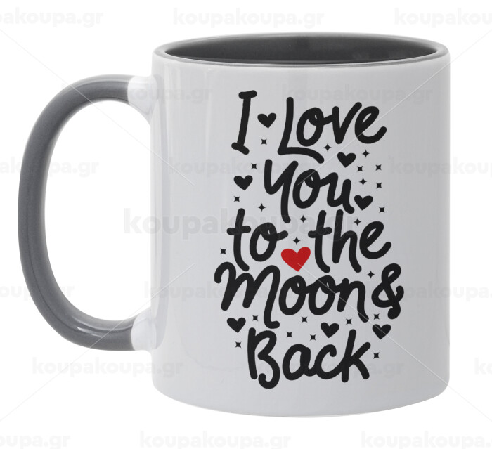 I love you to the moon and back with hearts, Κούπα χρωματιστή γκρι, κεραμική, 330ml