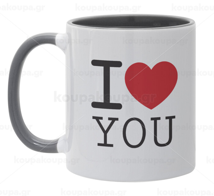 I Love you classic, Κούπα χρωματιστή γκρι, κεραμική, 330ml