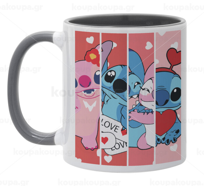 Lilo & Stitch Love, Κούπα χρωματιστή γκρι, κεραμική, 330ml