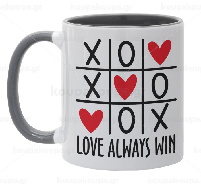 Love always win, Κούπα χρωματιστή γκρι, κεραμική, 330ml
