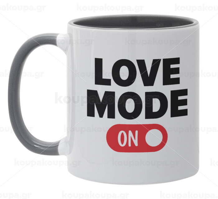 LOVE MODE ON, Κούπα χρωματιστή γκρι, κεραμική, 330ml