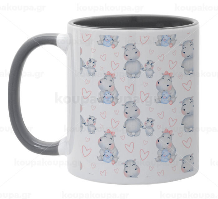 Ιπποπόταμος, Κούπα χρωματιστή γκρι, κεραμική, 330ml
