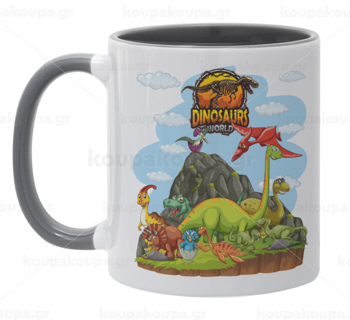 Dinosaur's world, Κούπα χρωματιστή γκρι, κεραμική, 330ml