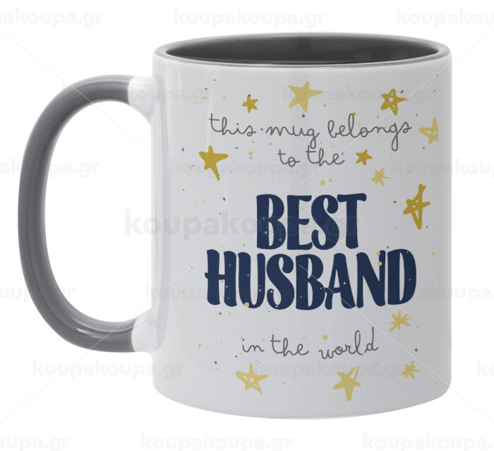 This mug belongs to the BEST HUSBAND in the world!, Κούπα χρωματιστή γκρι, κεραμική, 330ml