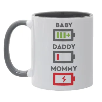 BABY, MOMMY, DADDY Low battery, Κούπα χρωματιστή γκρι, κεραμική, 330ml