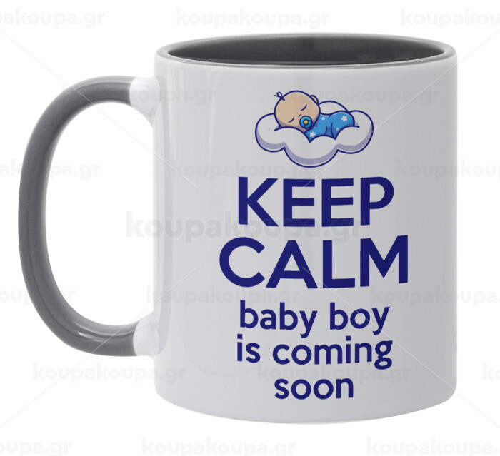 KEEP CALM baby boy is coming soon!!!, Κούπα χρωματιστή γκρι, κεραμική, 330ml