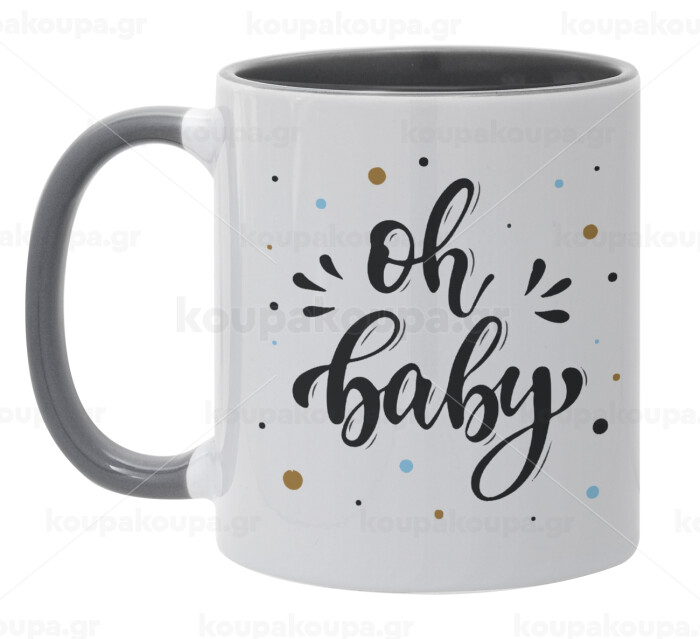 Oh baby, Κούπα χρωματιστή γκρι, κεραμική, 330ml