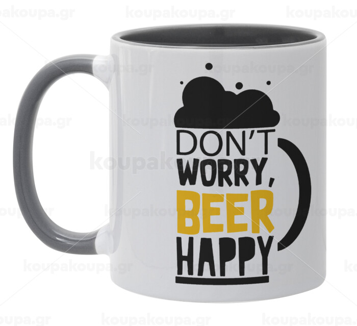 Don't worry BEER Happy, Κούπα χρωματιστή γκρι, κεραμική, 330ml
