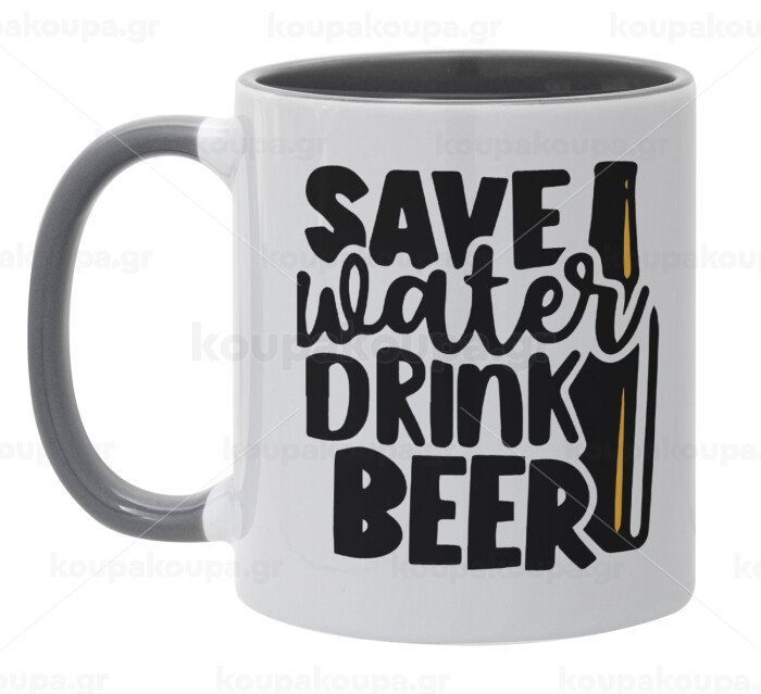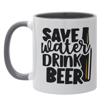 Save Water, Drink BEER, Κούπα χρωματιστή γκρι, κεραμική, 330ml