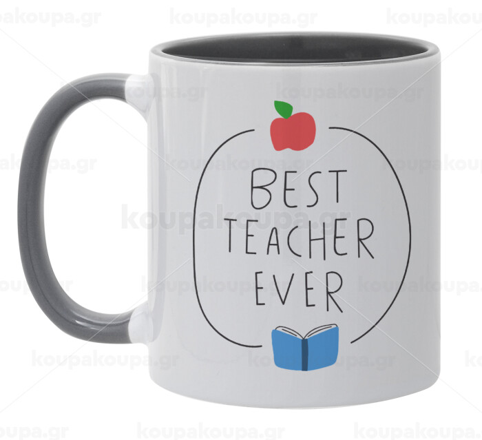 Best teacher ever, Κούπα χρωματιστή γκρι, κεραμική, 330ml