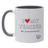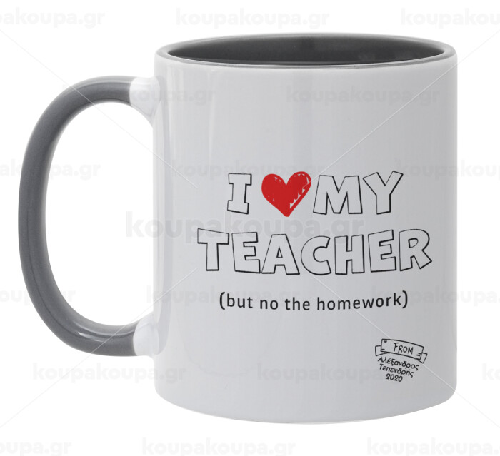 i love my teacher but no the homework outline, Κούπα χρωματιστή γκρι, κεραμική, 330ml
