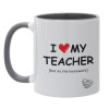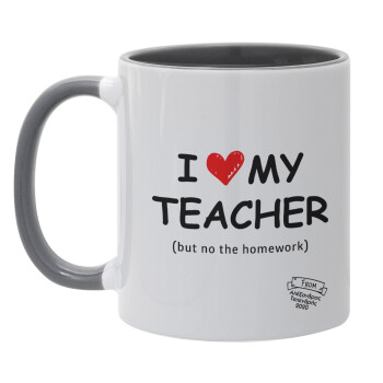 i love my teacher but no the homework, Κούπα χρωματιστή γκρι, κεραμική, 330ml