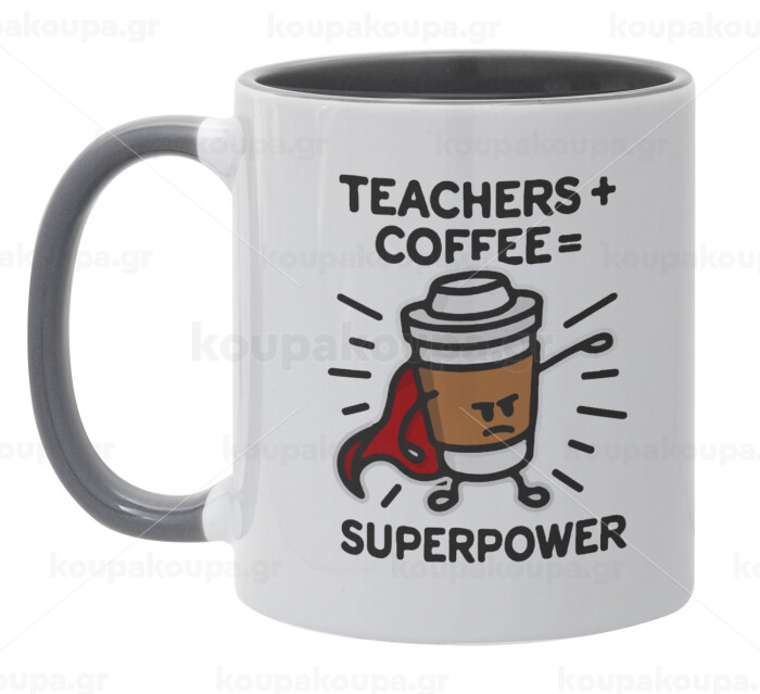 Teacher Coffee Super Power, Κούπα χρωματιστή γκρι, κεραμική, 330ml