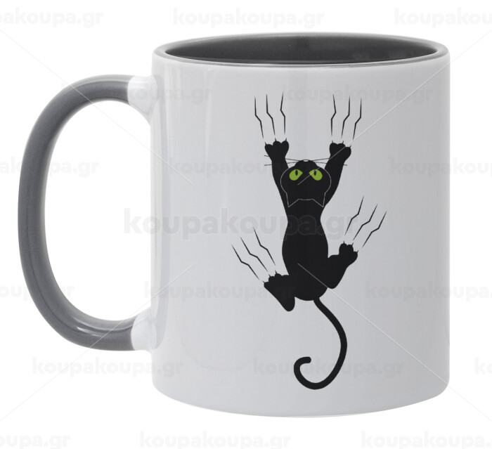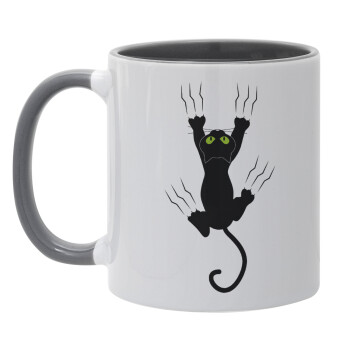 Γατούλα γρατζουνιά, Κούπα χρωματιστή γκρι, κεραμική, 330ml