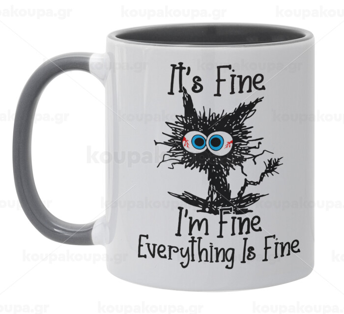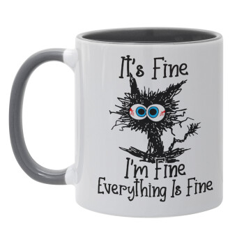 Cat, It's Fine I'm Fine Everything Is Fine, Κούπα χρωματιστή γκρι, κεραμική, 330ml