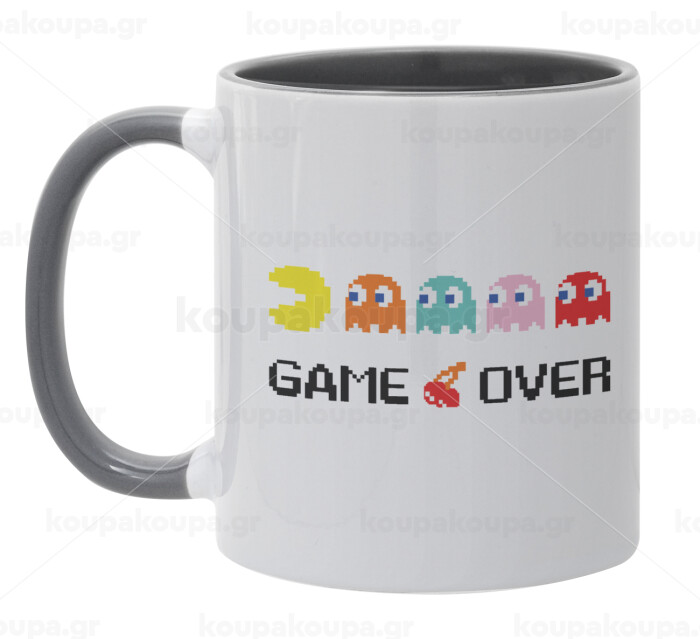 GAME OVER pac-man, Κούπα χρωματιστή γκρι, κεραμική, 330ml