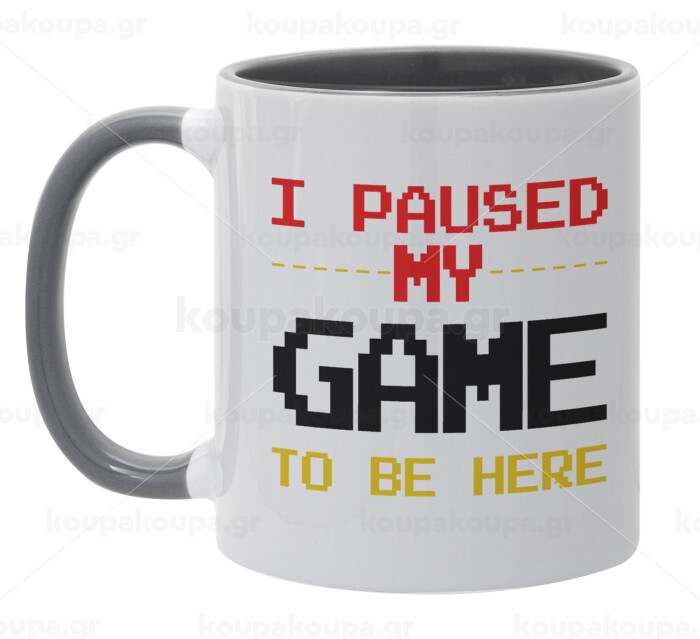 I paused my game to be here, Κούπα χρωματιστή γκρι, κεραμική, 330ml