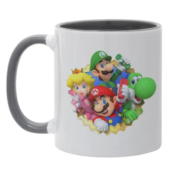 Super mario and Friends, Κούπα χρωματιστή γκρι, κεραμική, 330ml