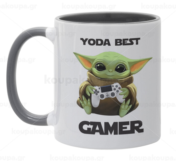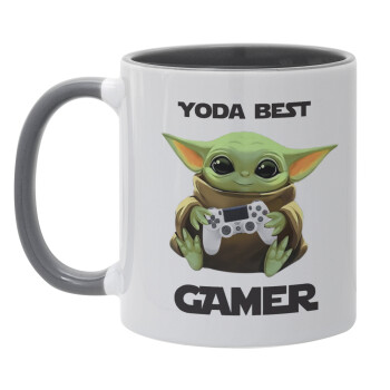 Yoda Best Gamer, Κούπα χρωματιστή γκρι, κεραμική, 330ml
