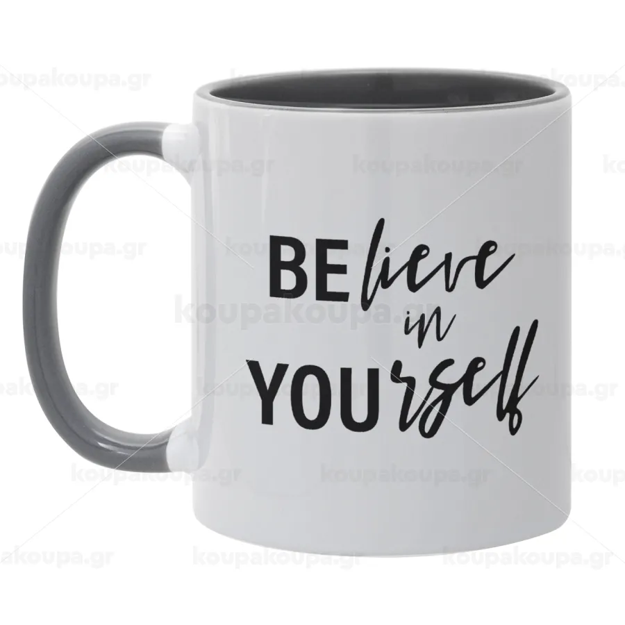 Believe in your self, Κούπα χρωματιστή γκρι, κεραμική, 330ml