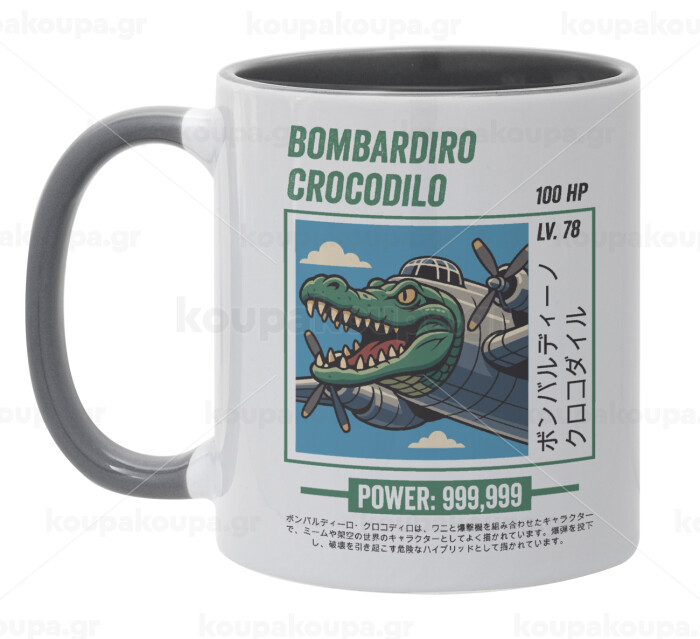 Bombardiro Crocodilo, Κούπα χρωματιστή γκρι, κεραμική, 330ml