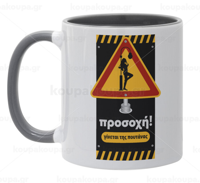 Προσοχή Γίνεται της πουτ.νας, Κούπα χρωματιστή γκρι, κεραμική, 330ml