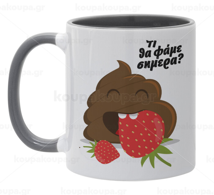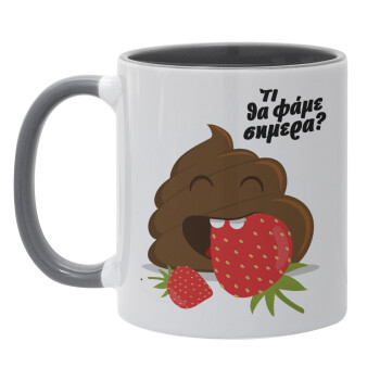 Τι θα φάμε σημερα???, Κούπα χρωματιστή γκρι, κεραμική, 330ml