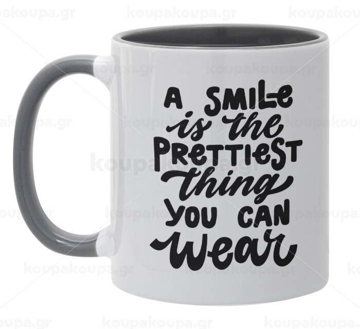 A smile is the prettiest thing you can wear, Κούπα χρωματιστή γκρι, κεραμική, 330ml