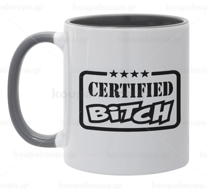 Certified Bitch, Κούπα χρωματιστή γκρι, κεραμική, 330ml
