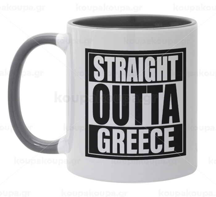 Straight Outta greece, Κούπα χρωματιστή γκρι, κεραμική, 330ml