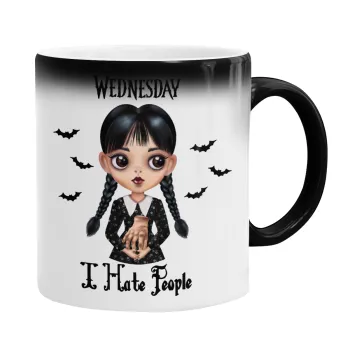 Wednesday Adams, i hate people, Κούπα χρωματιστή μαύρη, κεραμική, 330ml