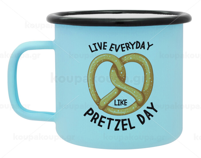 The office, Live every day like pretzel day, Κούπα Μεταλλική εμαγιέ ΜΑΤ σιέλ 360ml