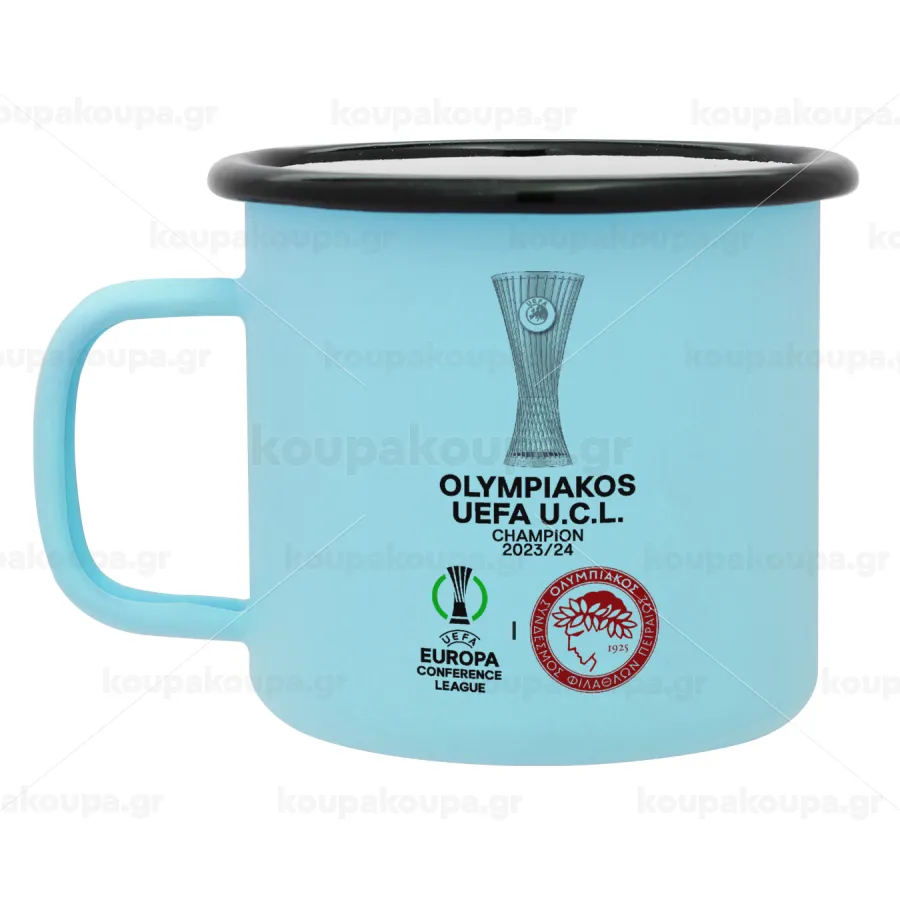 Ολυμπιακός νικητής UEFA Europa Conference League Champion 2023/24, Κούπα Μεταλλική εμαγιέ ΜΑΤ σιέλ 360ml