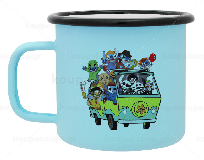 Stitch Halloween scooby car, Κούπα Μεταλλική εμαγιέ ΜΑΤ σιέλ 360ml