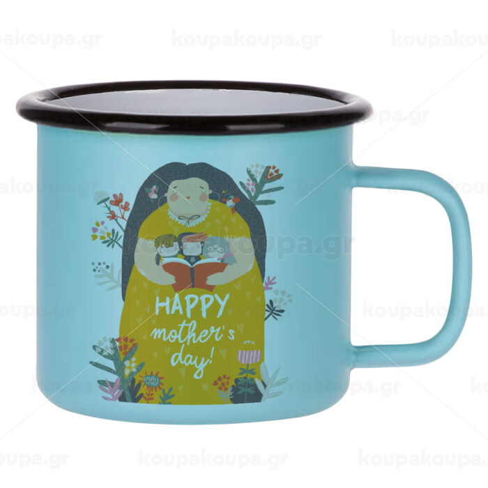 Cute mother reading book, happy mothers day, Κούπα Μεταλλική εμαγιέ ΜΑΤ σιέλ 360ml