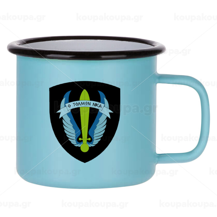 Έμβλημα Μονάδων Καταδρομών Ο Τολμων Νικα - Λοκ, Κούπα Μεταλλική εμαγιέ ΜΑΤ σιέλ 360ml