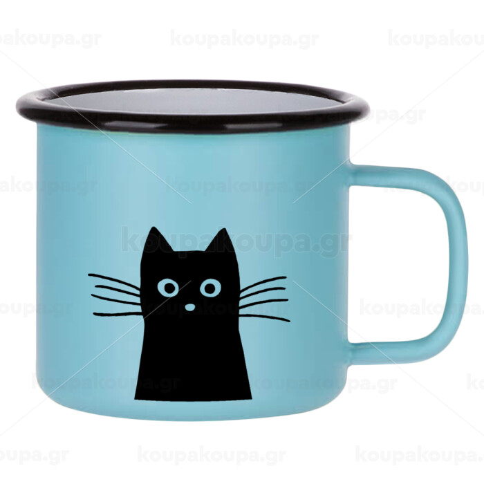 Μαύρη γάτα, Κούπα Μεταλλική εμαγιέ ΜΑΤ σιέλ 360ml
