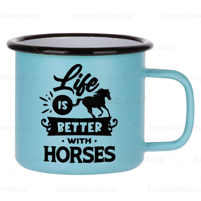 Life is Better with a Horses, Κούπα Μεταλλική εμαγιέ ΜΑΤ σιέλ 360ml