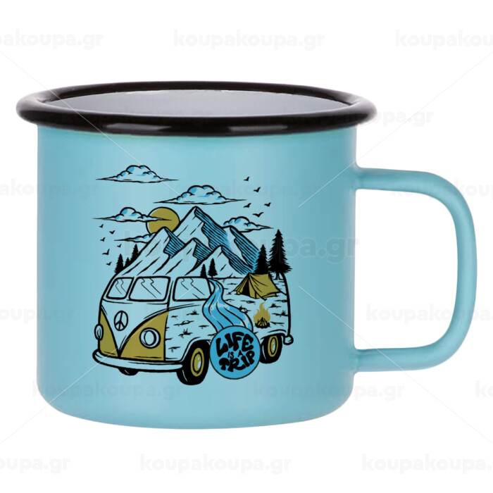 Life is a trip, Κούπα Μεταλλική εμαγιέ ΜΑΤ σιέλ 360ml