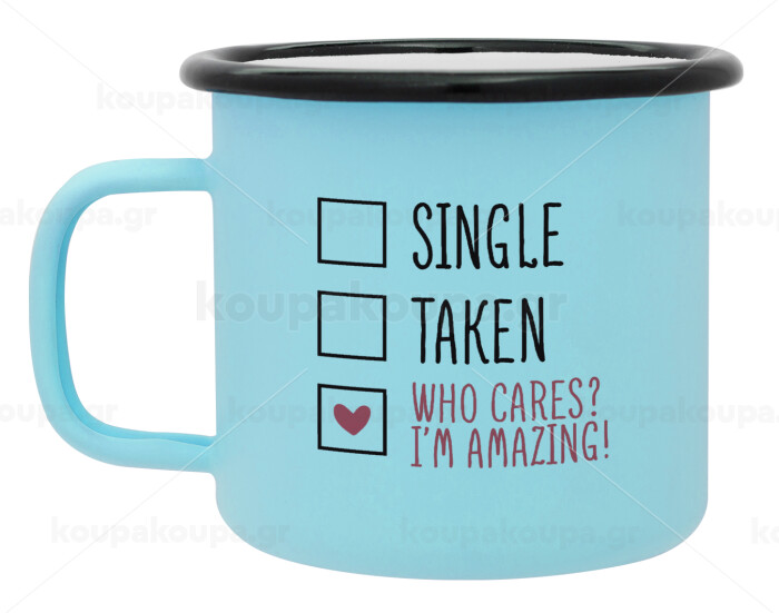 Single, Taken, Who cares i'm amazing, Κούπα Μεταλλική εμαγιέ ΜΑΤ σιέλ 360ml