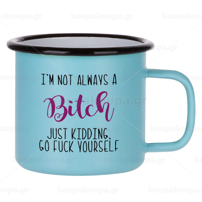 I'm not always a bitch, just kidding go f..k yourself , Κούπα Μεταλλική εμαγιέ ΜΑΤ σιέλ 360ml